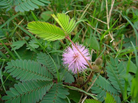 怕 醜 草 又 名 含 羞 草 ( 學 名 : Mimosa pudica ) , 葉 片 受 到 刺 激 ( 如 碰 觸 ) 時 , 會 收 縮 起 來 。 該 植 物 常 用 於